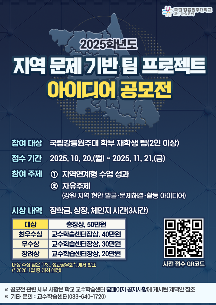 「2025학년도 지역 문제 기반 팀 프로젝트 아이디어 공모전」을 개최하오니